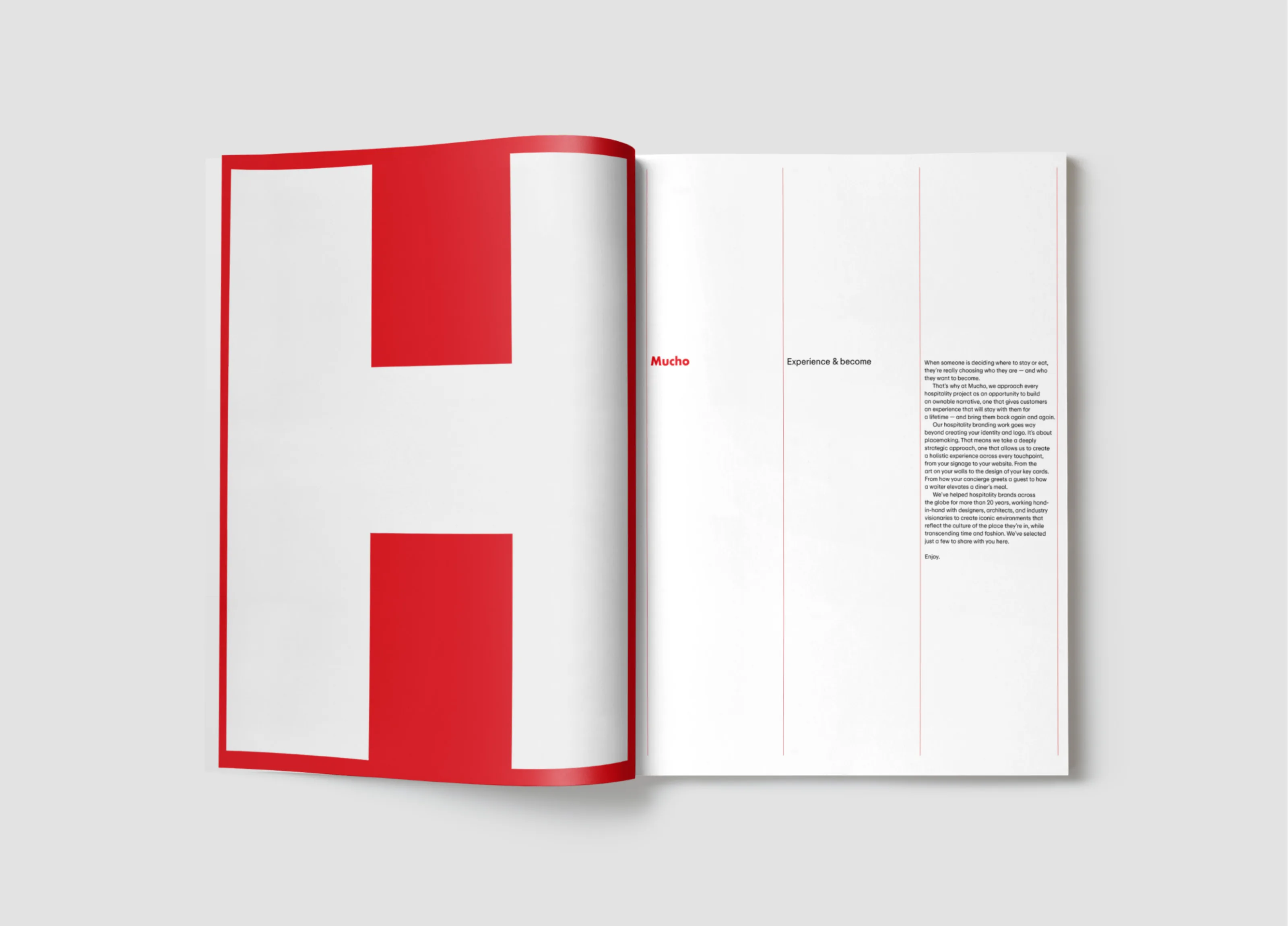 This is the first Issue of The Mucho Standard, a series of portfolios featuring our work in the different industries we have been working on. Hospitality is the first one.